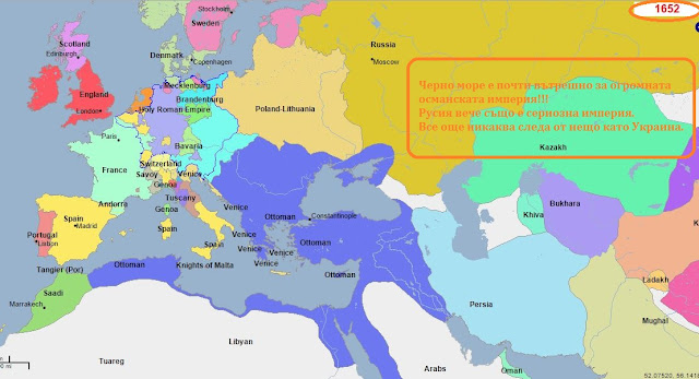 Годината е 1622-ра. Руската и Османската империя впечатляват с размерите си. Крим както се вижда е все още османско владение, а Русия дори и много да и се иска, все още няма излаз на Черно море.